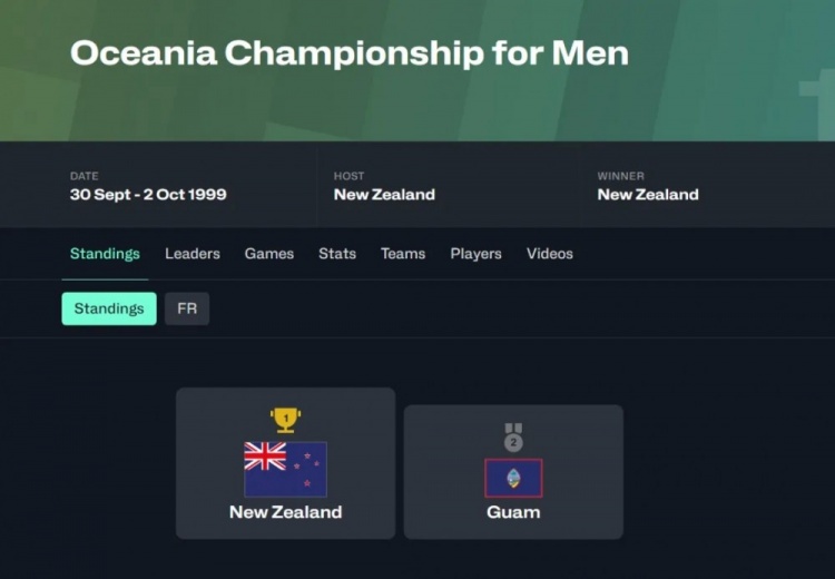 1999年,關(guān)島唯一一次參加大洋洲籃球錦標(biāo)賽,這個(gè)比賽是奧運(yùn)會(huì)大洋洲參賽名額的預(yù)算賽,一般都是澳新二人轉(zhuǎn),但2000年澳大利亞是奧運(yùn)會(huì)東道主直接晉級(jí),關(guān)島被迫參賽,取得了第二名的歷史最好成績(jī)