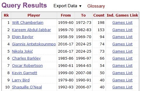 2025-02-28 16:24:07歷史25分15板5助場次榜:張伯倫198次一騎絕塵 字母哥75次第四