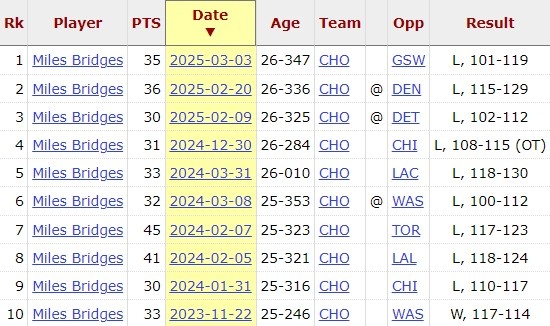 2025-03-08 11:57:07太慘了!邁爾斯-布里奇斯在過(guò)去10場(chǎng)拿到30+的比賽全輸了