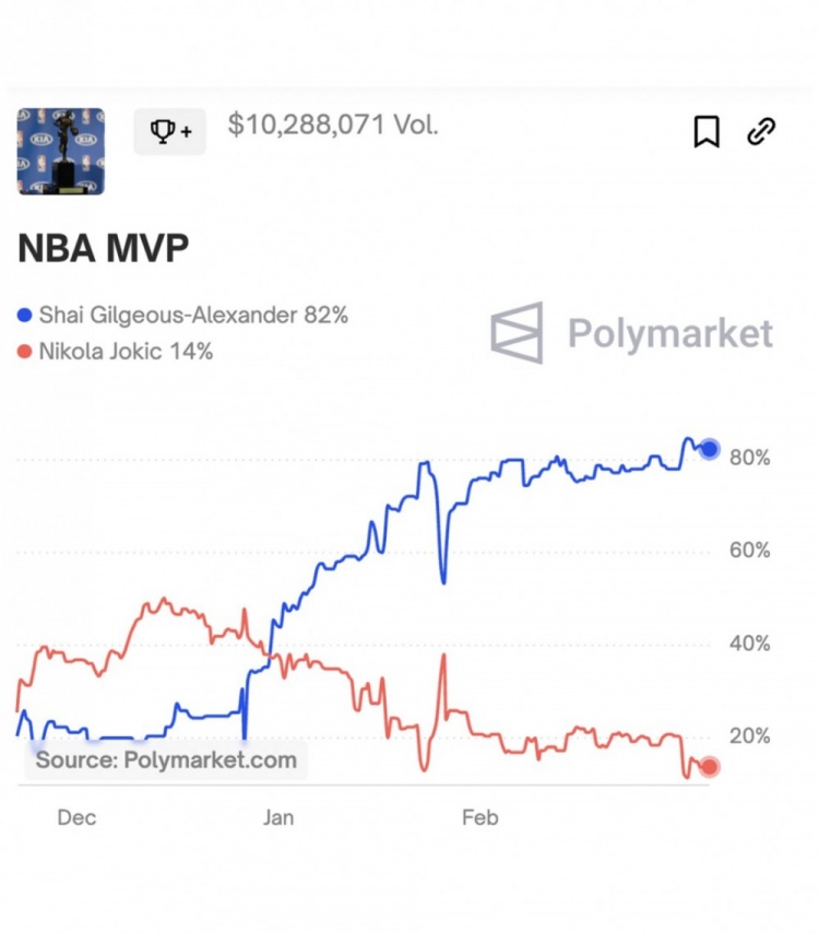 2025-03-08 21:33:59砍31分21板22助!美媒更新MVP概率:約基奇僅14% 亞歷山大82%