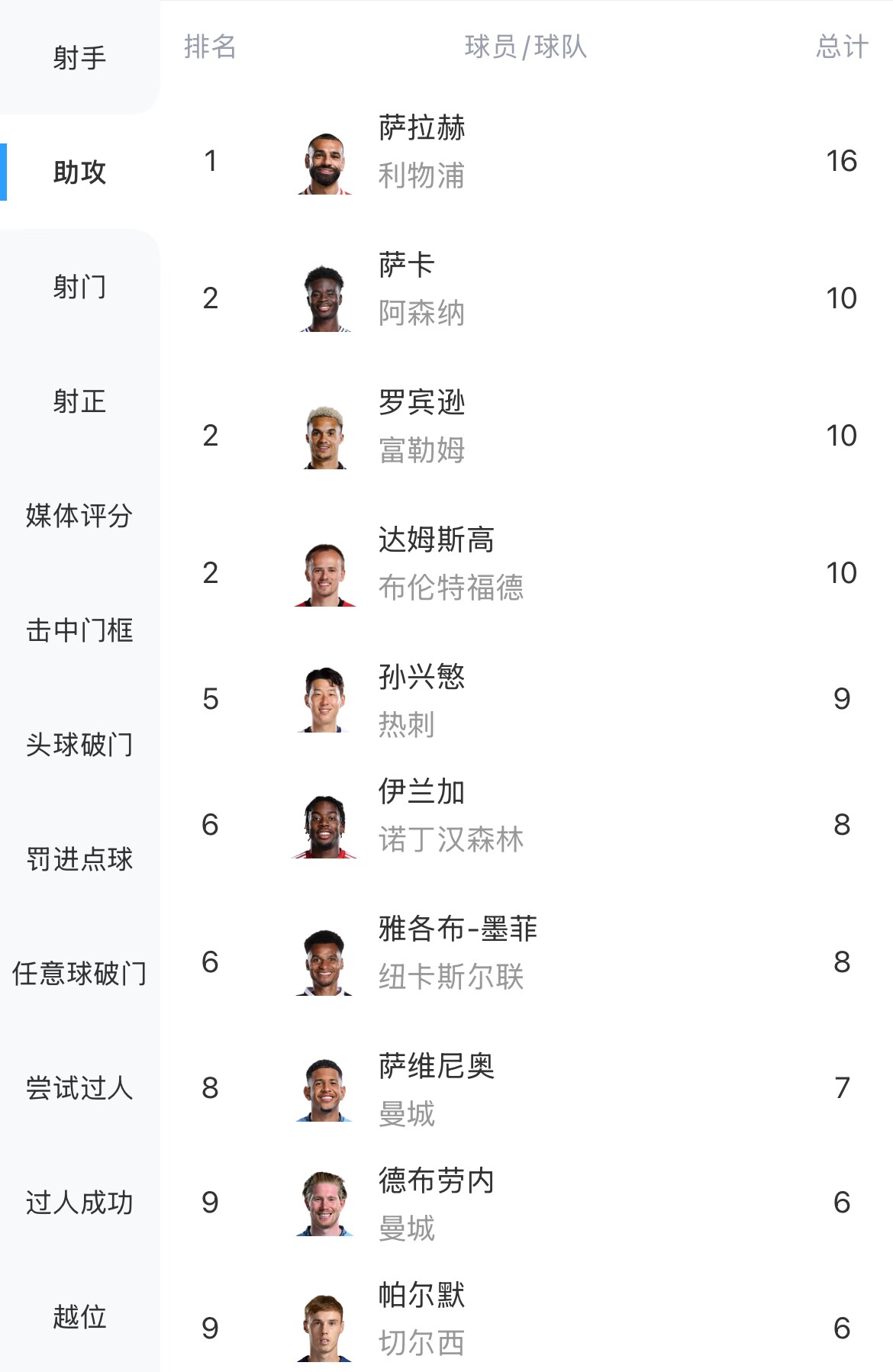 2025-02-24 16:11:14英超本賽季參與進(jìn)球榜:薩拉赫41球第1,伊薩克24球第2