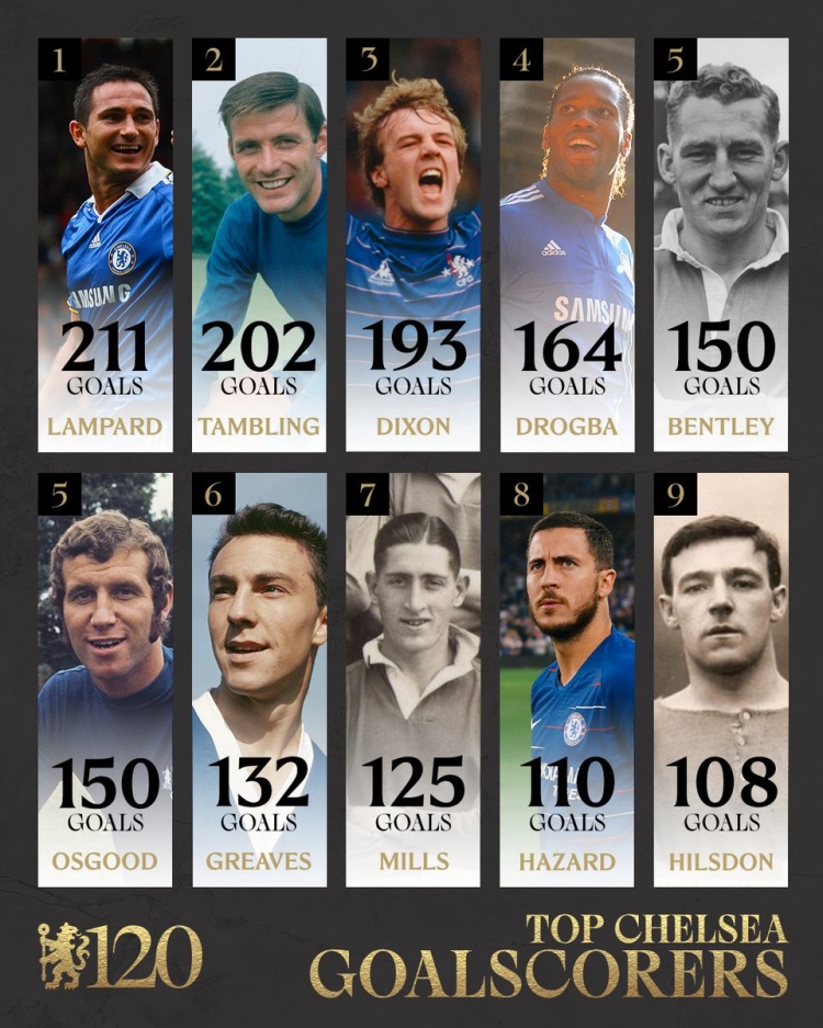2025-03-11 23:57:56切爾西隊(duì)史射手榜:蘭帕德211球居首,德羅巴第4,阿扎爾第8