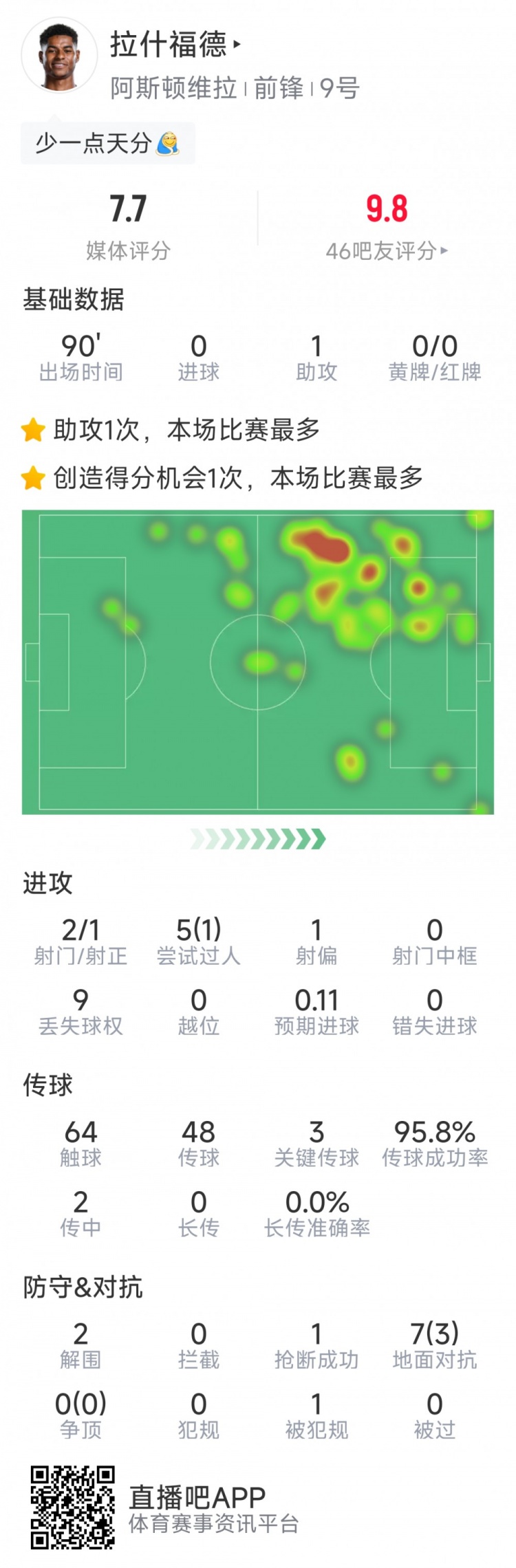 2025-03-13 06:59:33再送助攻,拉什福德本場數據:1助攻,3次關鍵傳球,2次射門