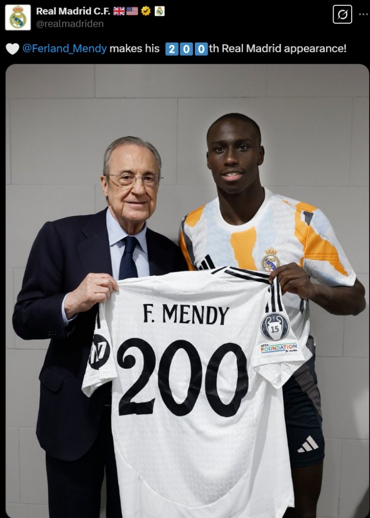 2025-03-13 14:38:02門(mén)迪達(dá)成皇馬200次出場(chǎng)里程碑,獲贈(zèng)紀(jì)念球衣&與弗洛倫蒂諾合影