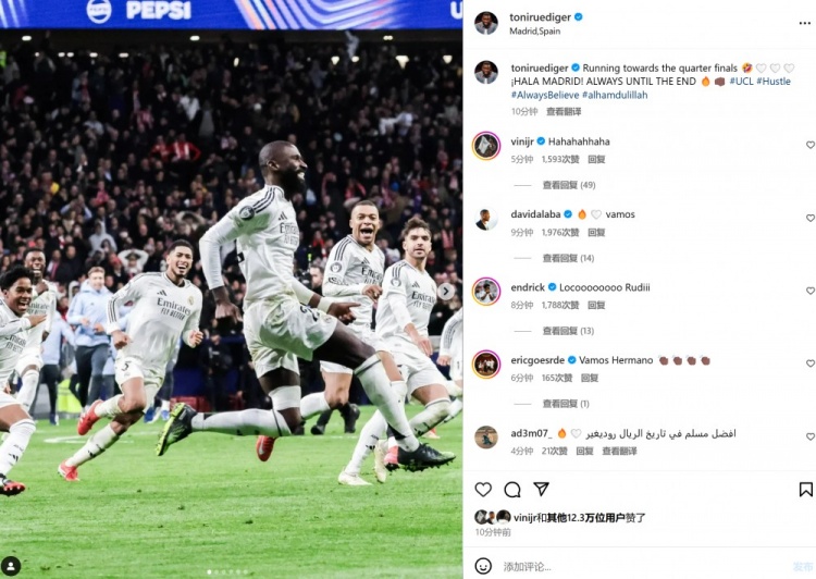 2025-03-13 14:38:52打進(jìn)致勝點(diǎn)球,呂迪格社媒曬慶祝照:永遠(yuǎn)堅(jiān)持到最后一刻!