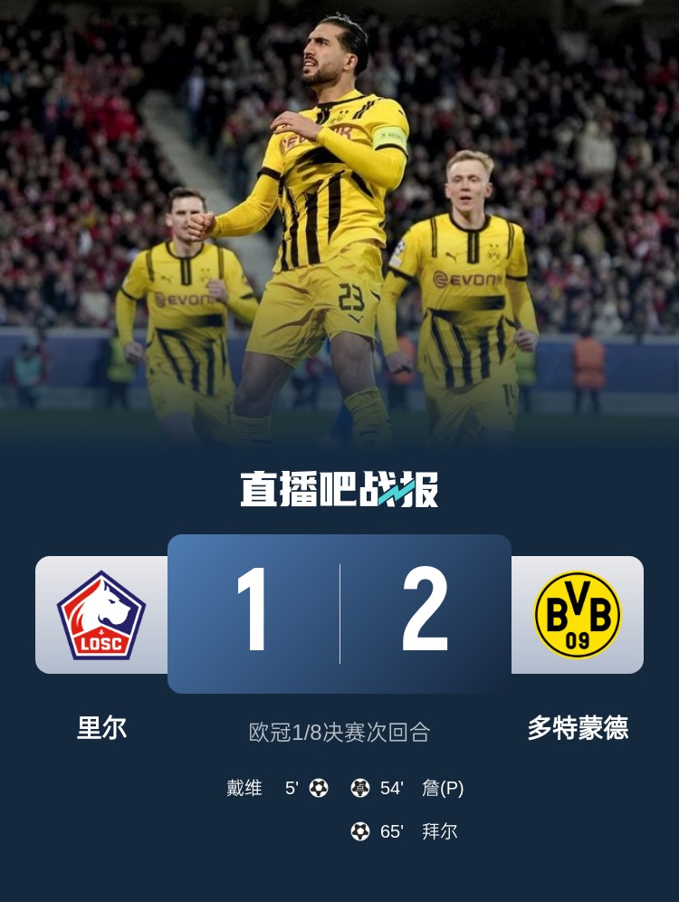 2025-03-13 04:48:352025年03月13日 將戰(zhàn)巴薩!多特2-1總比分3-2逆轉(zhuǎn)里爾 埃姆雷-詹點射拜爾建功