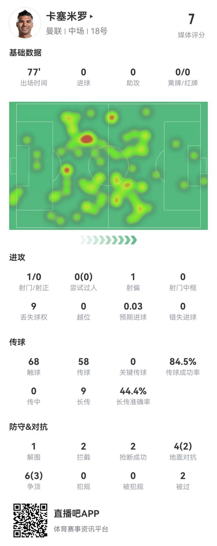 2025-03-14 11:47:37卡塞米羅本場11對抗6成功 3搶斷2攔截+4成功長傳 獲評7.0分