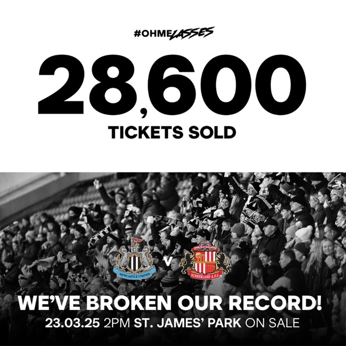 2025-03-20 10:22:17這可是女足次級別!紐卡女足vs桑德蘭售出28600張票,創(chuàng)隊史紀(jì)錄