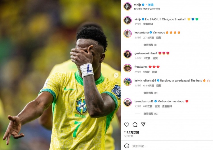 2025-03-22 10:16:45開場(chǎng)造點(diǎn)+世界波絕殺!維尼修斯社媒曬慶祝照:這就是巴西!