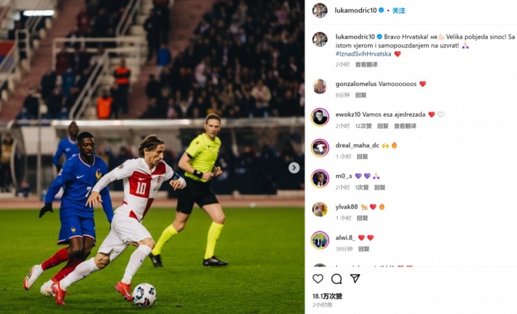 2025-03-22 10:17:12力克大熱門法國!莫德里奇社媒:次回合要保持同等信念和自信