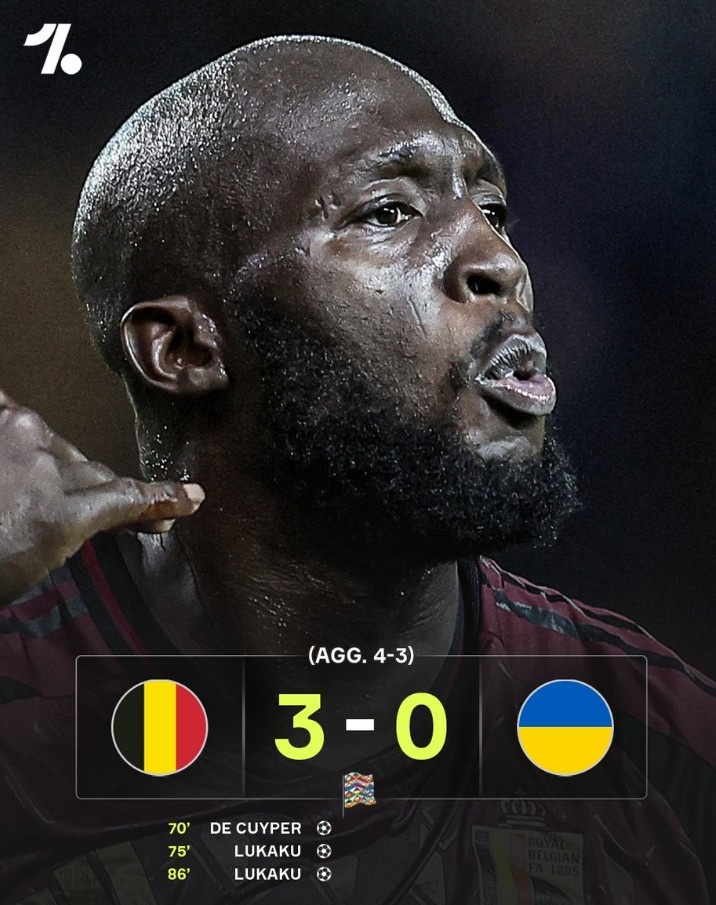 2025-03-24 09:28:31歐國聯(lián)升級賽次回合比利時3-0擊敗烏克蘭,盧卡庫梅開二度