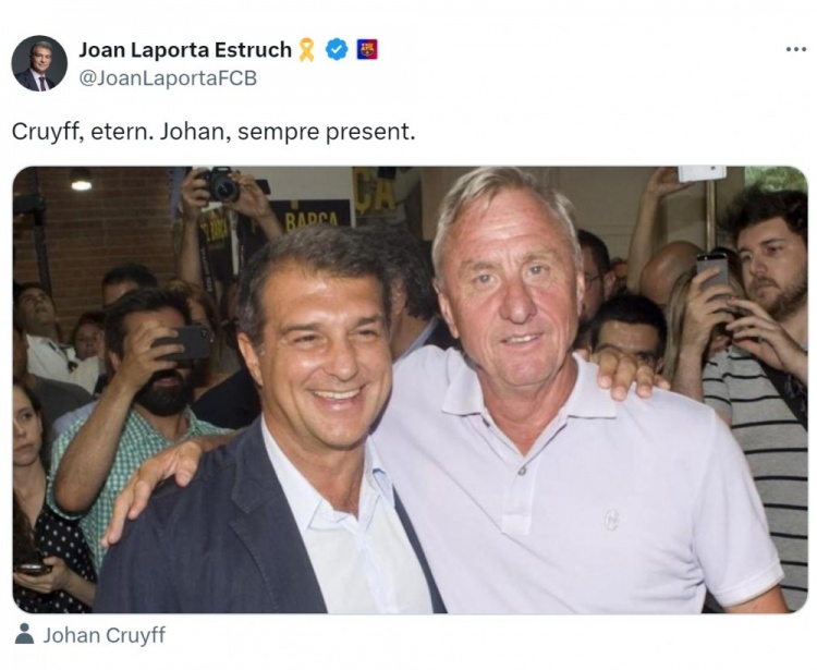 2025-03-25 13:00:38克魯伊夫逝世九周年,拉波爾塔社媒曬合照悼念:永恒不朽