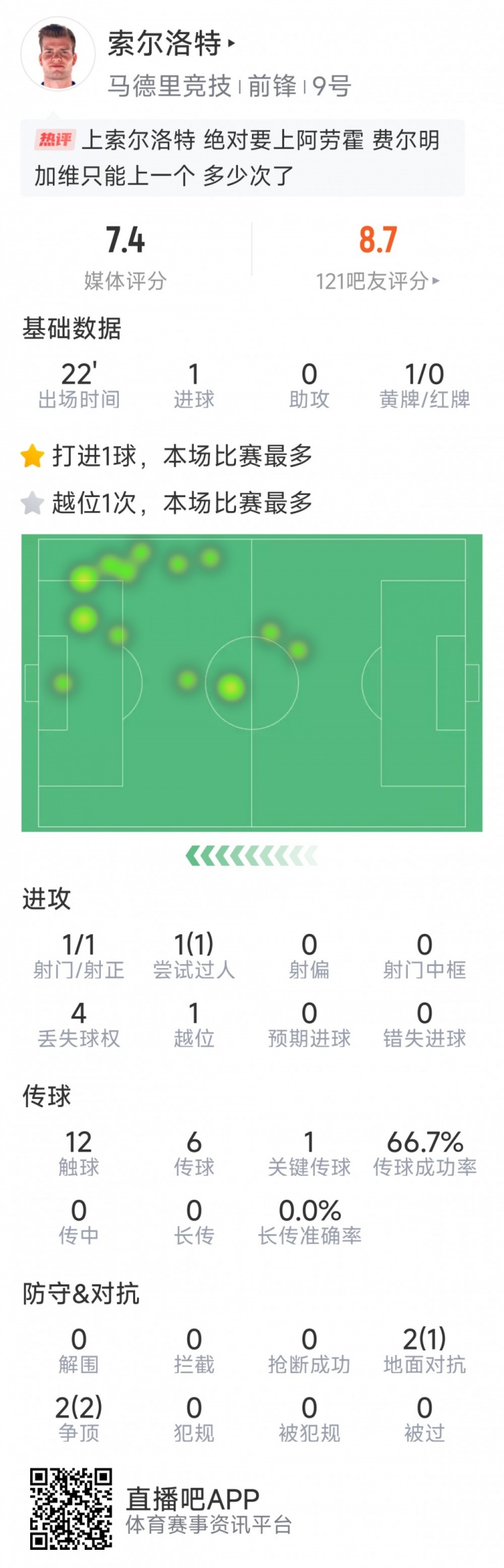 2025-02-26 08:09:10高效!索爾洛特本場數(shù)據(jù):替補(bǔ)登場打進(jìn)絕平,1次射門,1關(guān)鍵傳球