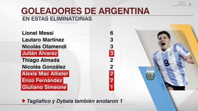 2025-03-26 20:37:10本屆世預賽阿根廷射手榜:梅西6球,勞塔羅、奧塔門迪、小蜘蛛3球