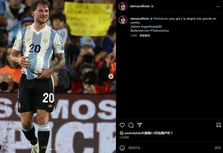 2025-03-26 20:37:54麥卡利斯特慶祝擊敗巴西:主場(chǎng)獲勝&取得進(jìn)球,加油阿根廷
