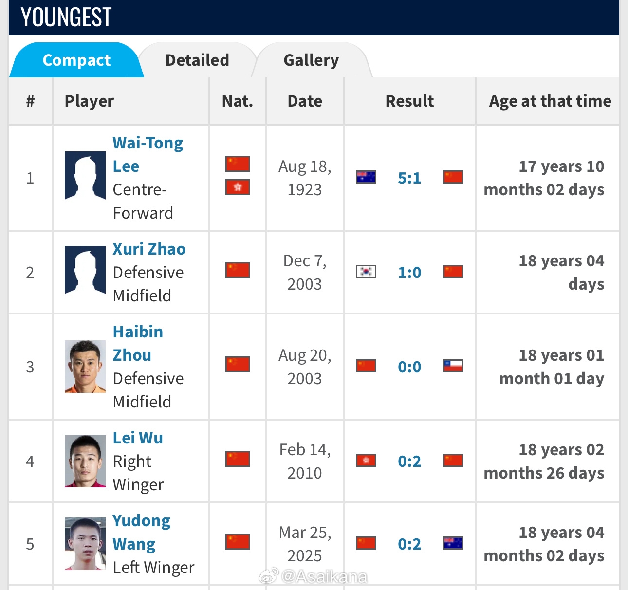 2025-03-26 20:47:25不算上古大神,王鈺棟在國足A級(jí)最年輕出場(chǎng)里排第四(18歲4個(gè)月)