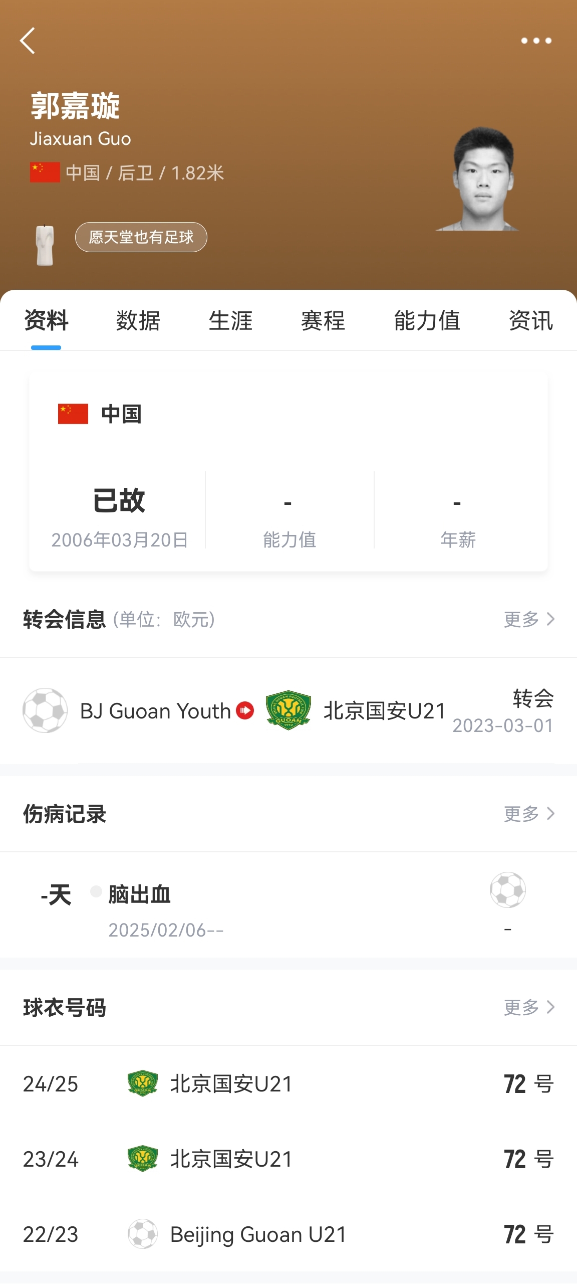 2025-03-30 20:16:41北京國(guó)安官方發(fā)文送別郭嘉璇:共同緬懷這位永遠(yuǎn)18歲的足球少年