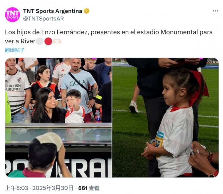 2025-03-30 20:22:28恩佐女友帶著孩子來到紀(jì)念碑球場,現(xiàn)場觀看恩佐母隊河床比賽