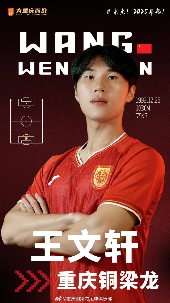 2025-02-26 16:06:26官方:中甲球隊(duì)重慶銅梁龍簽下前廣州隊(duì)后衛(wèi)王文軒