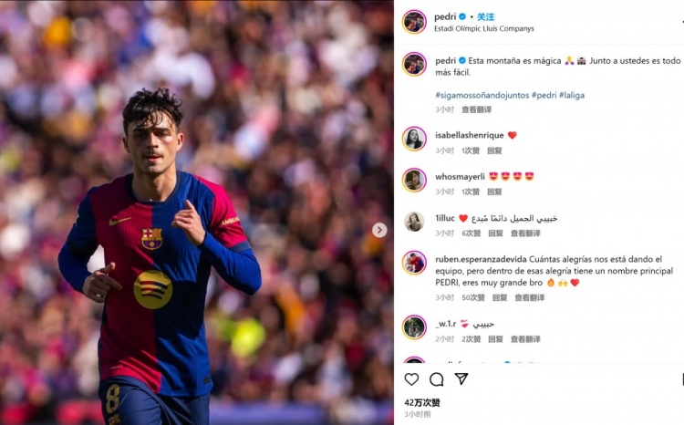 2025-03-31 10:15:07佩德里社媒感謝球迷:主場仿佛有魔力,有你們支持一切都更容易