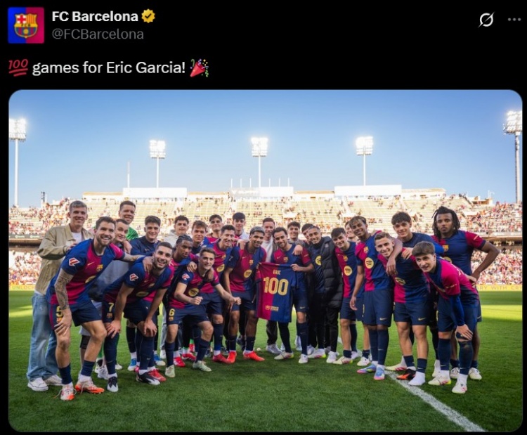 2025-03-31 10:17:33埃里克-加西亞迎巴薩百場里程碑,獲贈紀(jì)念球衣&與全隊合影留念