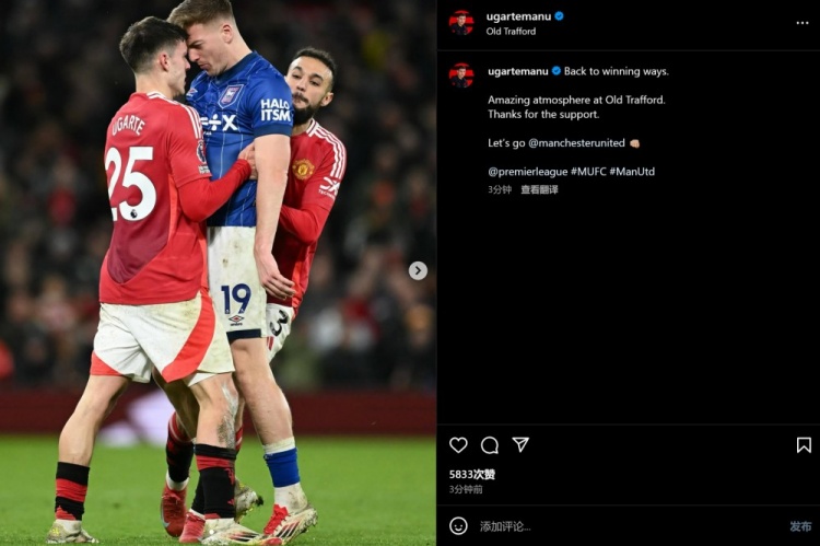 2025-02-27 08:10:20烏加特曬和德拉普頂牛照片:重回勝利軌道,老特拉福德氛圍太棒了