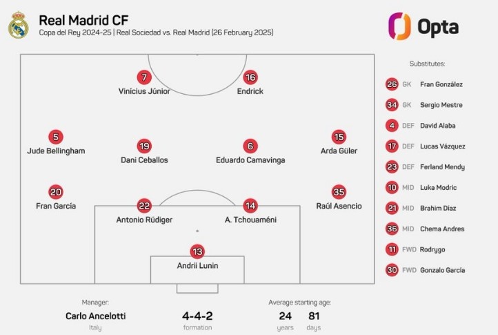 2025-02-27 08:11:05皇馬變陣,居勒爾、恩德里克、維尼修斯首次搭檔先發(fā)出戰(zhàn)