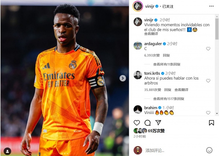 2025-02-27 16:07:56維尼修斯社媒發(fā)文慶祝勝利:與我夢中的俱樂部一起經(jīng)歷難忘時(shí)刻