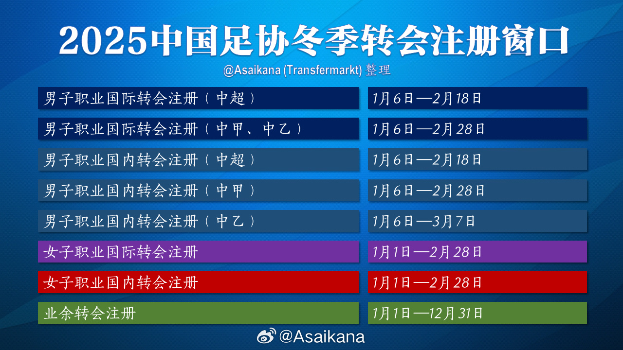 2025中國(guó)職業(yè)聯(lián)賽冬季轉(zhuǎn)會(huì)窗時(shí)間