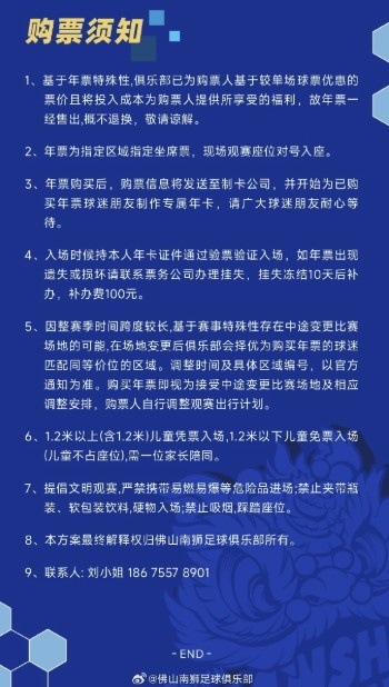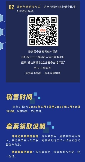 2025-03-01 16:06:04佛山南獅2025賽季年票公告:分三個檔次,540元-1080元