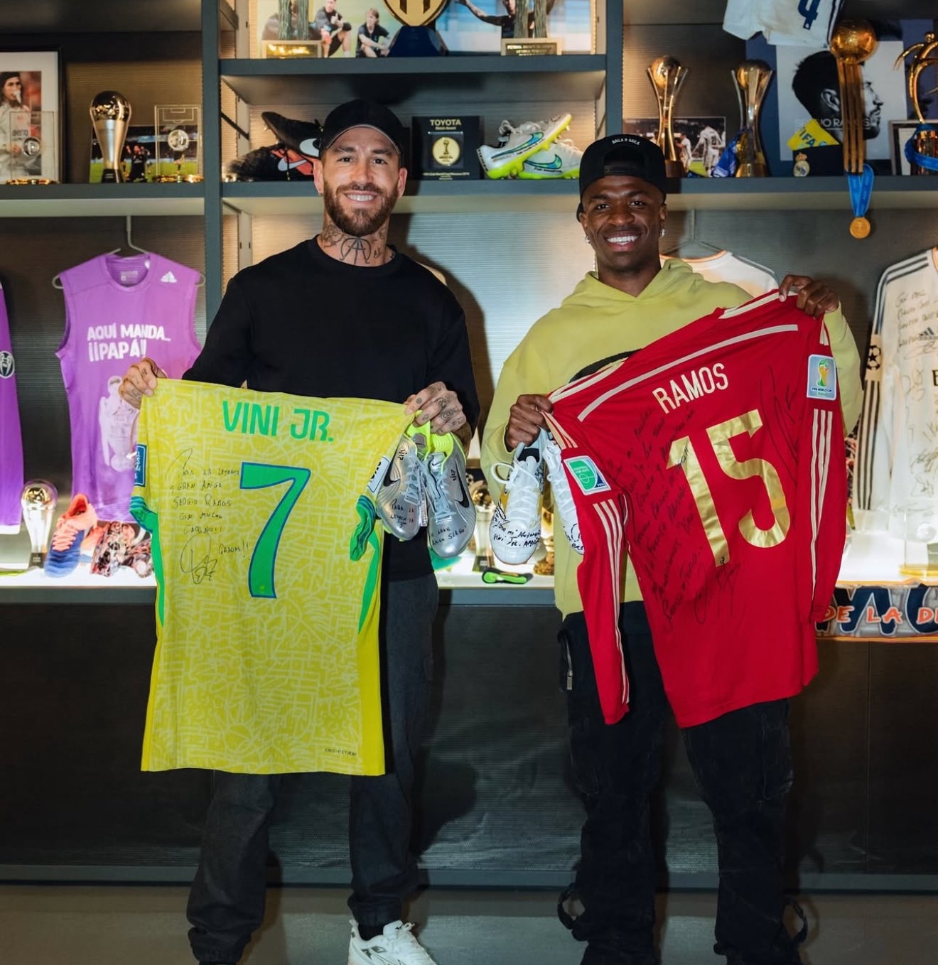 2025-02-21 17:49:42傳承!維尼修斯拜訪皇馬傳奇拉莫斯,兩人交換國家隊(duì)球衣