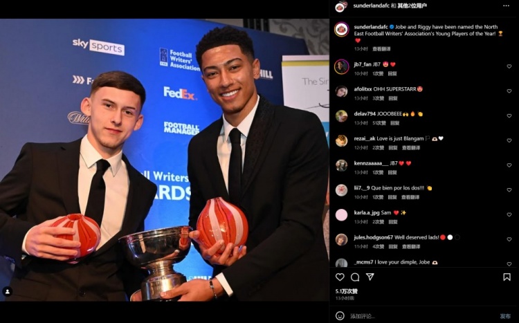 2025-03-04 20:35:22官方:小貝林厄姆獲英格蘭東北部足球作家協(xié)會年度最佳年輕球員獎