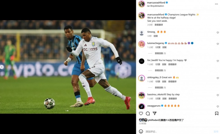 2025-03-05 11:27:05拉什福德社媒曬照:歐冠之夜,我們距離晉級還有一半路程!