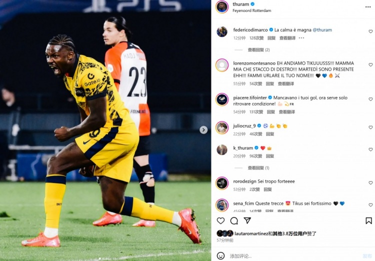 2025-03-06 10:43:36鋒線雙星雙雙破門,勞塔羅&小圖拉姆社媒曬怒吼慶祝照