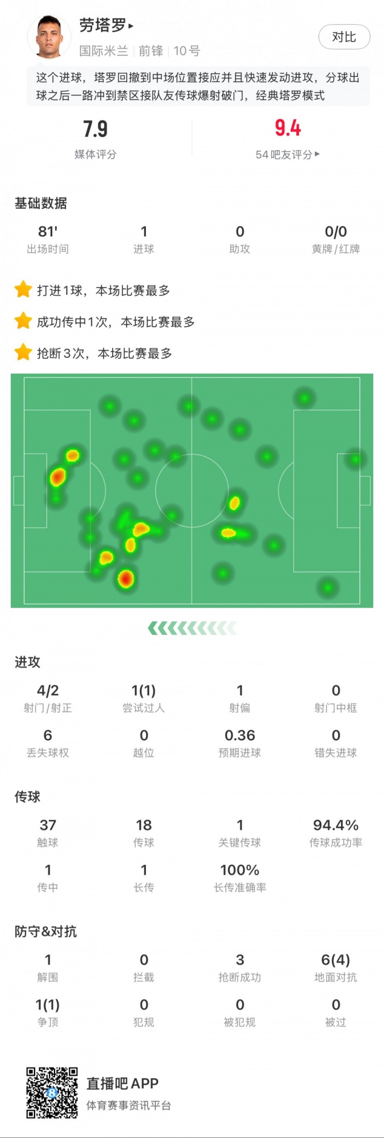 2025-03-06 10:44:53勞塔羅本場數據:1粒進球,4次射門2次射正,3次搶斷