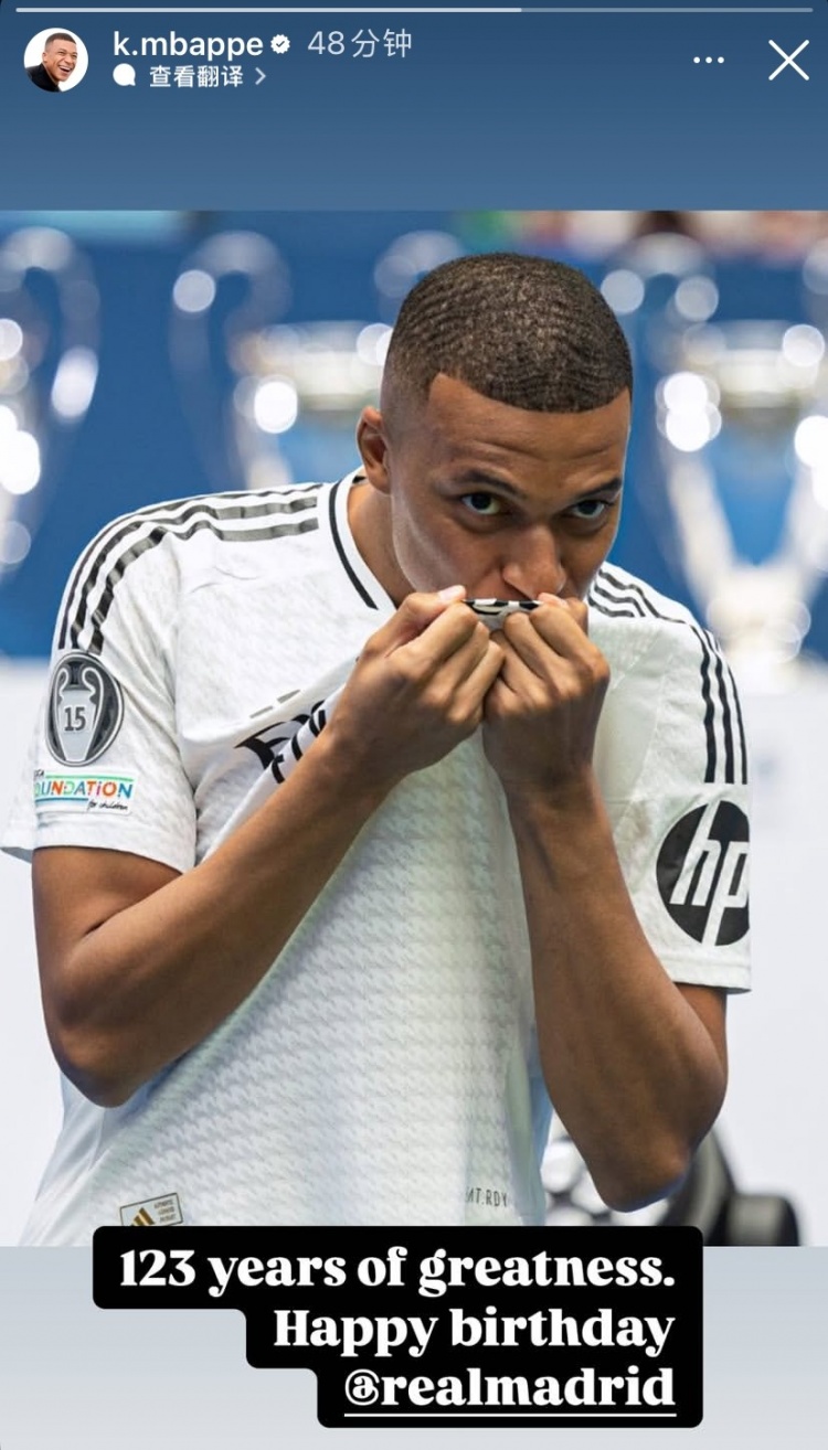 2025-03-07 13:08:18姆巴佩祝賀皇馬成立123周年:123年的偉大歷史,皇馬生日快樂