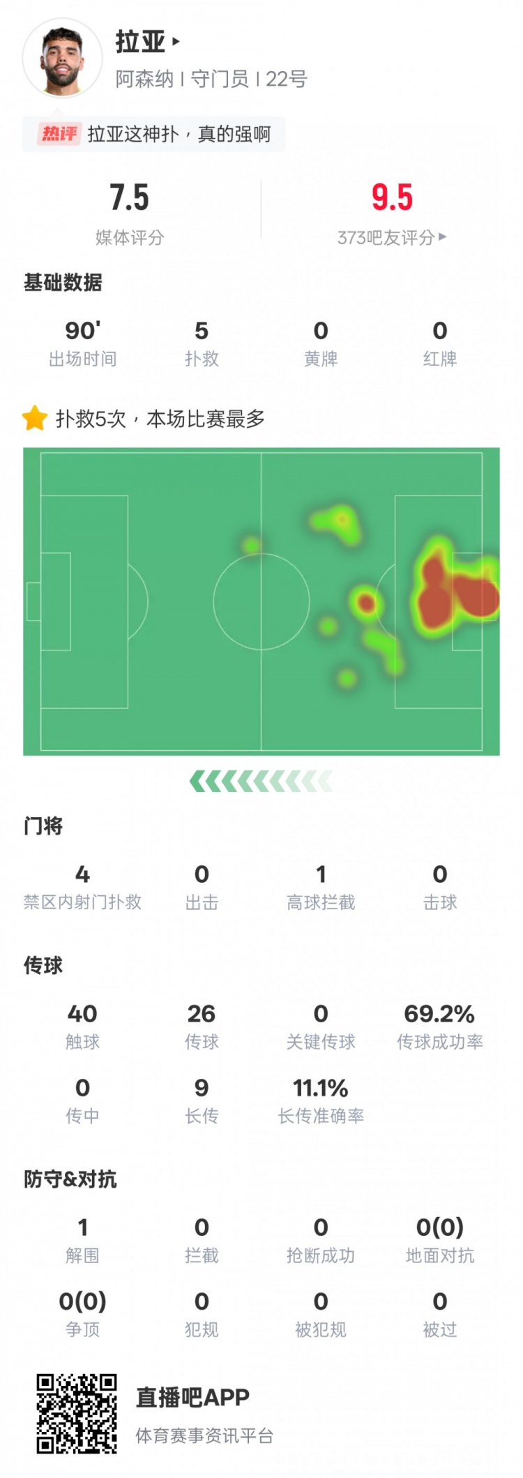 2025-03-10 06:03:27拉亞本場數(shù)據(jù):5次撲救全場最多&4次撲救對(duì)手禁區(qū)內(nèi)射門,評(píng)分7.5