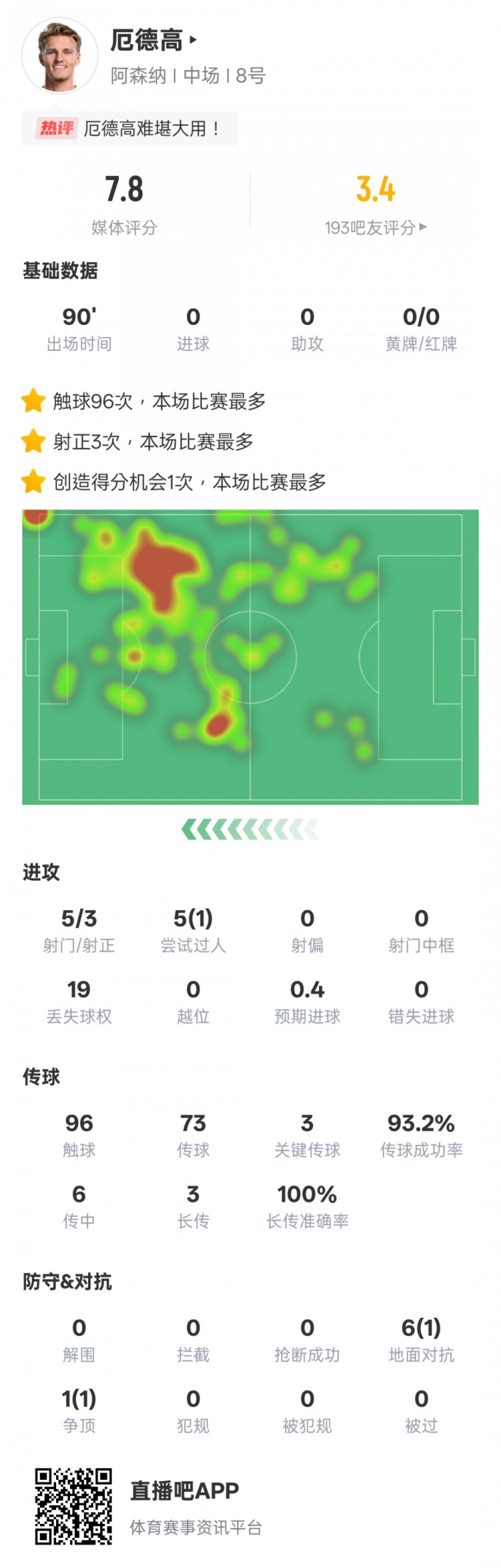 2025-03-10 06:03:32厄德高本場數(shù)據(jù):3關鍵傳球&創(chuàng)造1次進球機會,評分7.8