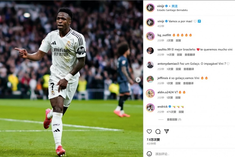 2025-03-10 06:04:29維尼修斯社媒慶祝勝利:讓我們繼續(xù)前進(jìn)贏得更多!